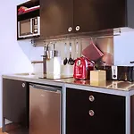 Denna lägenhet på 28 m^2 har soffa, te/kaffebryggare och plattskärms-TV med satellitkanaler i varje rum. Separat toalett och dusch finns här.